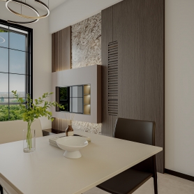 山河 原木奶油风一个客餐厅全景