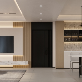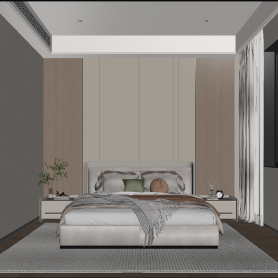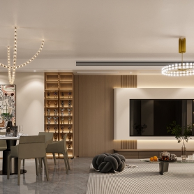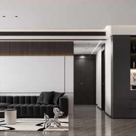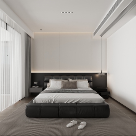现代极简 客餐厅全景+主卧全景
