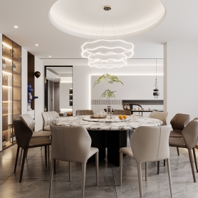 现代简约客餐厅全景(厨房要看到点)