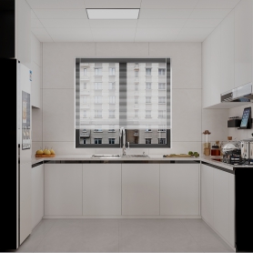 奶油风客餐厅全景+厨房单张