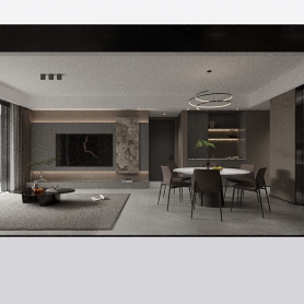 现代高级灰客餐厅加主卧2张全景