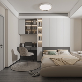 现代风格客餐厅+主卧+次卧三个全景