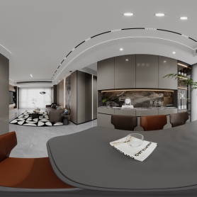 现代轻奢客餐厅+厨房两张全景(赠三张静态)