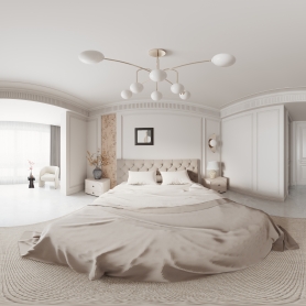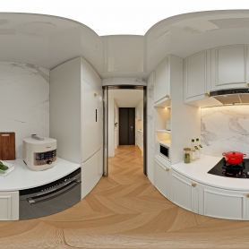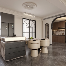 法式中古风格客餐厅全景,主卧室全景,厨房全景,卫生间静态,衣帽间静态,多功能房静态