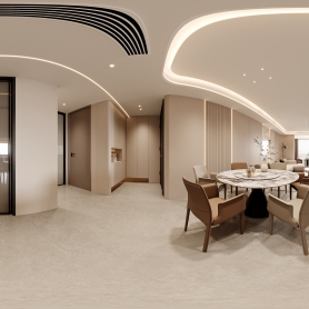 现代极简客餐厅一个全景(全景内送静态)