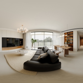 家装现代客餐厅全景,主卧室全景