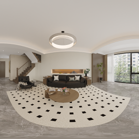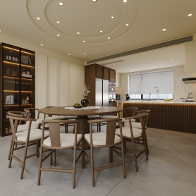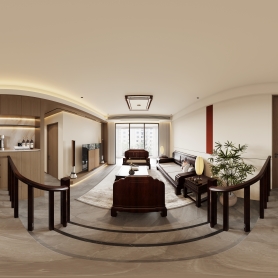 新中式客餐厅一个全景三张静态