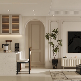 法式奶油风一个客餐厅全景特写两张