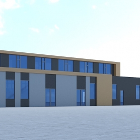 一张室外彩票站门头透视图