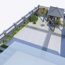 (石马刁田村陈府庭院设计)花园两个全景